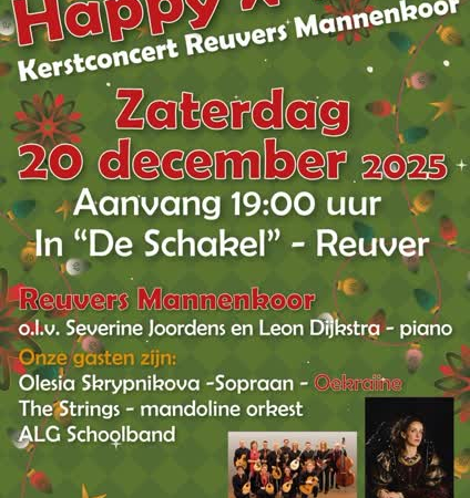 Het Reuvers Mannenkoor onder leiding van Severine Joordens presenteert een kerstconcert. Met pianobe...