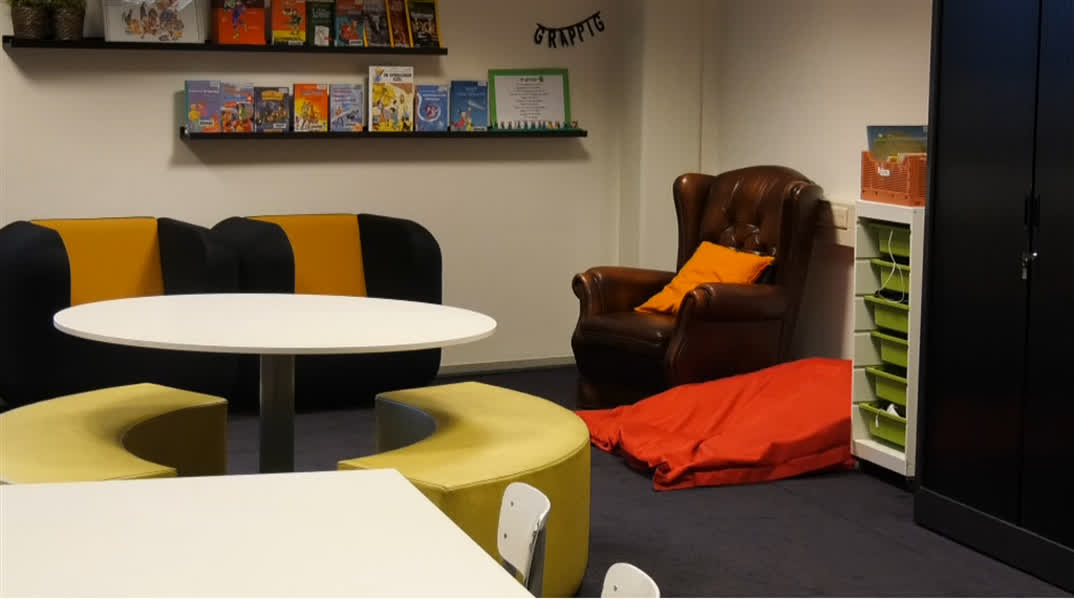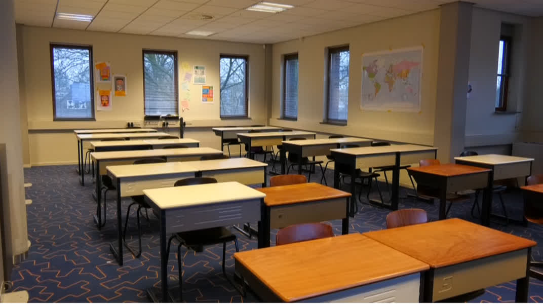 De kinderen van de bovenbouw van basisschool de Groenling zitten sinds maandag op een nieuwe locatie. Er wordt les gegeven in het voormalige kantoor van de Rabobank aan de John F. Kennedylaan. "We hebben hier de ruimte", aldus directeur Judith Ueberbach. "Dat is zeker in tijden van corona heel erg fijn."Het voormalige kantoorpand kwam vrij te liggen toen de bank eind vorig jaar besloot de kantooractiviteiten te verplaatsen naar Heythuysen. Er worden woningen gerealiseerd in het gebouw. Tot die tijd kan de basisschool er terecht.ToenameDe school kent een toename van het aantal leerlingen. Er zijn veel zij instromers en daar bovenop is het aantal geboortes toegenomen. Zo sterk, dat er dus ruimte tekort is. Dat is niet alleen bij de Groenling zo, maar ook bij de FavoRiet in Panningen. Deze exponentiële groei zag Prisma niet aankomen.Trots Vol trots vertelt directeur Ueberbach over de verhuizing. "Ik ben ongelofelijk trots op mijn team, dat binnen enkele dagen de ruimtes heeft weten te verbouwen tot gezellige klaslokalen." De hele bovenverdieping wordt benut. Er zijn zithoekjes, werkplekken en chillplekken. Ook kan er goed geventileerd worden. En dan is er nog één locatie waar de school zit. Naast het van origine schoolgebouw en het bankkantoor zit groep 8 in het schoolbestuurslocatie van Prisma aan de Kennedylaan. Deze kinderen wilden graag op deze locatie blijven.Toekomstige huisvestingOndertussen worden wel de mogelijkheden bekeken om het huisvestingsprobleem op te lossen. Want in het Rabobank gebouw komen woningen. "We willen graag één school zijn, dus alle kinderen op één locatie", aldus de directeur. Ook wil de school in Panningen blijven. Samen met de scholenkoepel en de gemeente worden scenario's uitgewerkt.