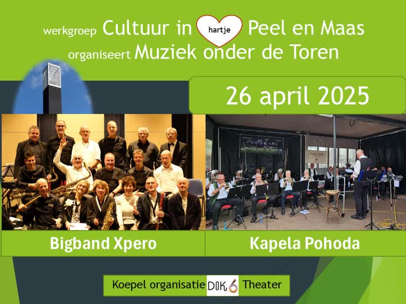 Later op de middag tussen 15.15 en 16.45 uur treedt Kapela Pohoda uit Panningen e.o. op; een welbekende formatie bij Muziek onder de Toren.