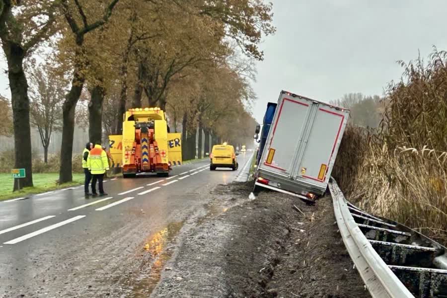 De vrachtwagen in de berm van de N275. Weginspecteurs Limburg (Instagram)