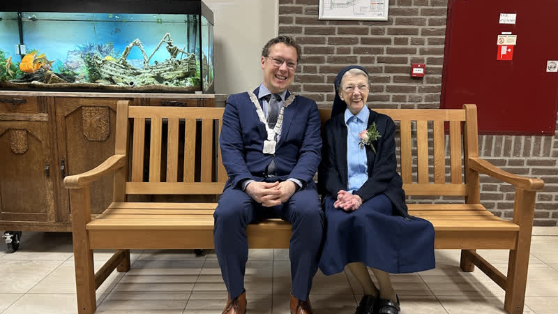 Zuster Magermans uit Panningen viert vrijdag haar 100e verjaardag. Burgemeester Bob Vostermans brach...