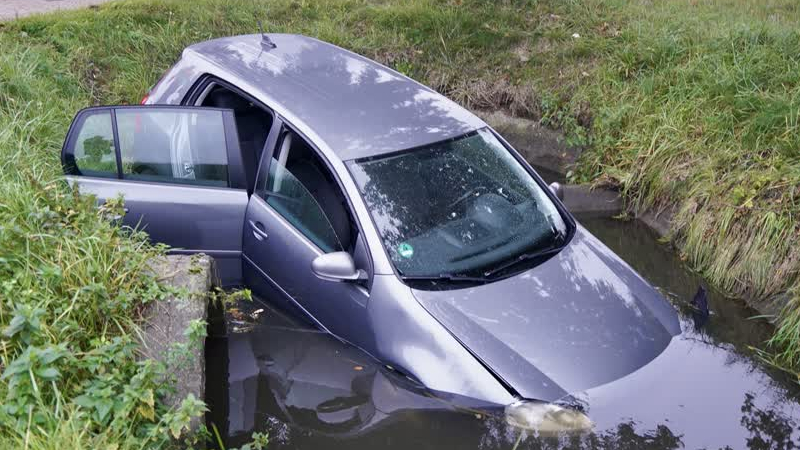 Een personenauto is zondagavond op de zijkant in een greppel terechtgekomen. Dat gebeurde rond 19.00...