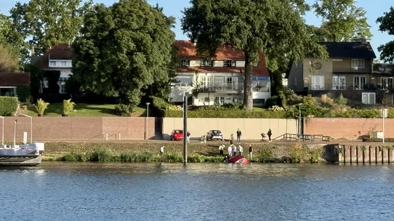 Een personenauto is vrijdagochtend gedeeltelijk te water geraakt in de Maas bij Kessel. Dat gebeurde...