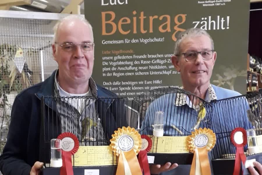 Tijdens de Limburgse kampioenschappen voor vogels in Horst, zijn zes leden van vogelvereniging Meije...
