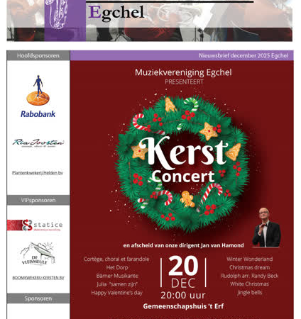 Muziekvereniging Egchel presenteert een Kerstconcert en neemt afscheid van dirigent Jan van Hamond.