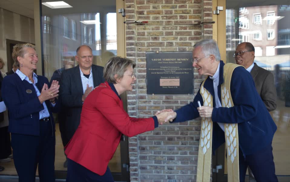 Burgemeester Wilma Delissen was aanwezig bij de inzegening: “Deze mooie uitbreiding van zorgcentrum Vincent Depaul is van een grote toegevoegde waarde voor de gemeenschap en een bijzonder geschenk van de Lazaristen. Ik hoop dat mensen hier een warm thuis zullen vinden en daardoor ook in hun vertrouwde omgeving kunnen blijven wonen.”