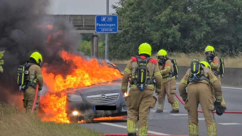 Een auto is donderdagavond volledig in vlammen opgegaan op de A67 ter hoogte van Grashoek.