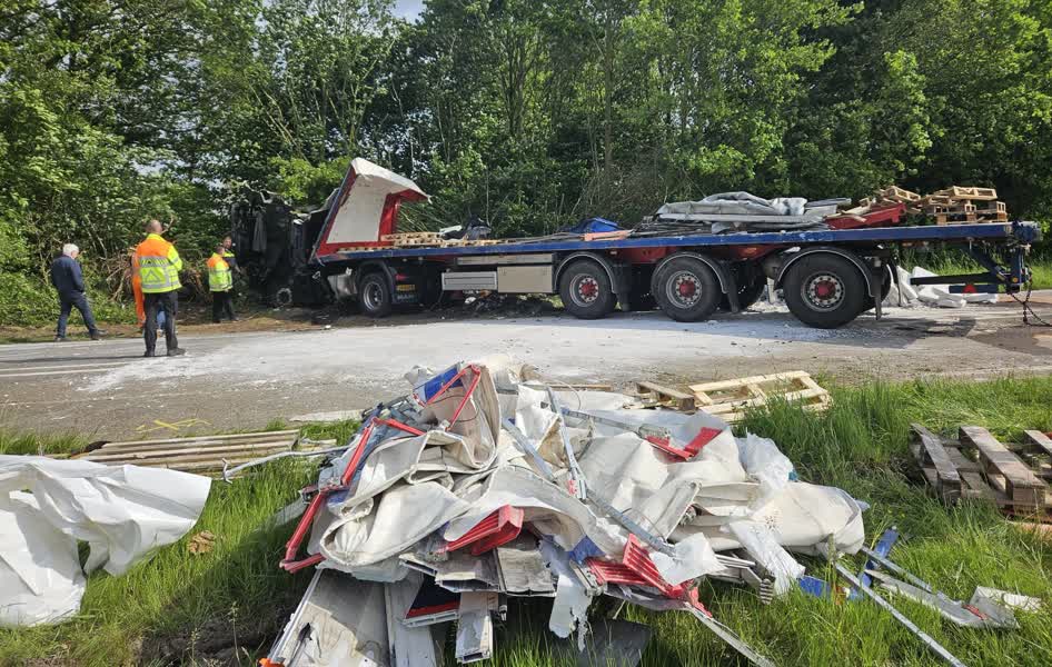 De andere chauffeur raakte gewond bij het ongeluk. De weg is afgesloten.