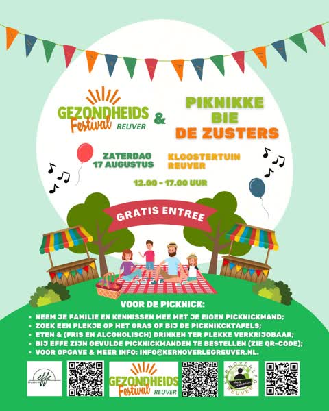 Het Gezondheidsfestival in de Reuverse kloostertuin vindt plaats op zaterdag 17 augustus van 12.00 tot 17.00 uur. De entree is gratis. Meer info is te vinden op