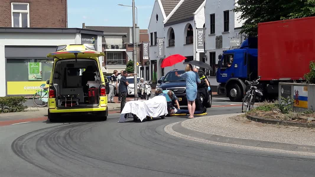 Een vrouw is vrijdagmiddag iets voor 15.00 uur aangereden door een auto bij rotonde Antiek in Helden aan de Molenstraat. De fietser werd met een ambulance naar het ziekenhuis gebracht.