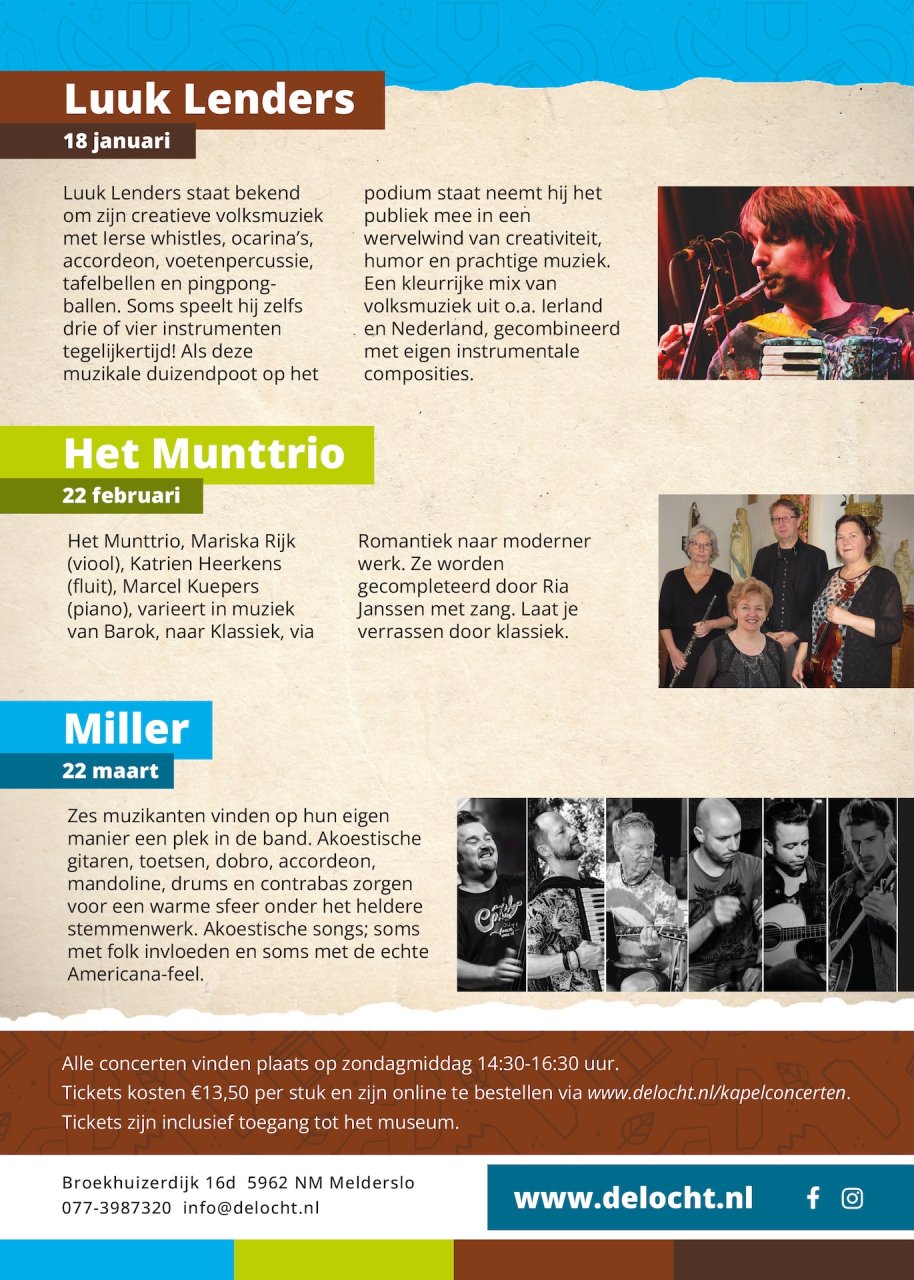 Het volledige programma is te vinden op www.delocht.nl/kapelconcerten