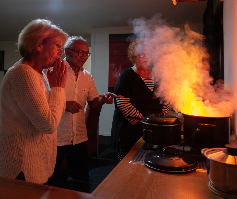 In de Risk Factory in Venlo ervaren bezoekers in nagebootste, realistische scenario’s hoe zij kunnen omgaan met risico’s. Denk aan het veilig vluchten bij brand, het herkennen van gevaar in het verkeer en het bellen van 112. Ook thema’s zoals valpreventie, internetcriminaliteit en eenzaamheid komen aan bod.