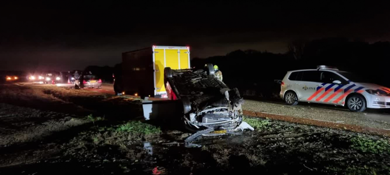 De bestuurder kwam met een auto aan de linkerzijde van de berm in de greppel terecht waarna het voertuig op z’n kop naast de weg eindigde. Na het ongeluk is een persoon per ambulance naar het ziekenhuis gebracht.