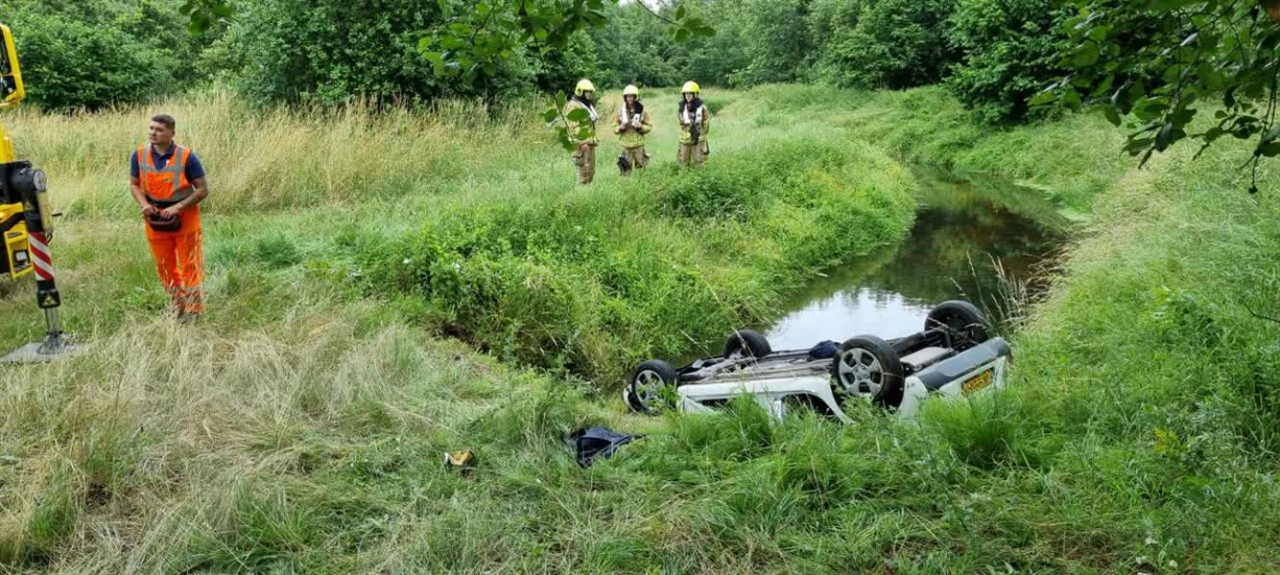 In een sloot vlakbij huisvestingslocatie Work and Stay lag een auto op de kop. Het is niet duidelijk hoe het voertuig in de sloot kon belanden. Ook is niet bekend of de automobilist gewond raakte en naar het ziekenhuis moest.