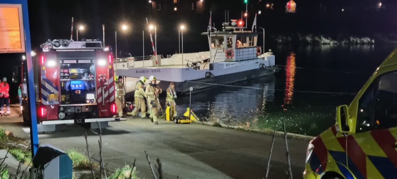 Een auto is woensdagochtend bij het veer in Baarlo in het water beland. De bestuurder werd door de brandweer uit het water gehaald.