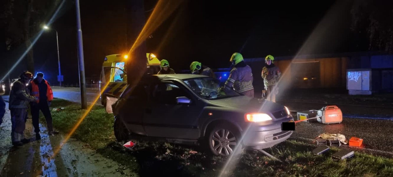 De auto botste tegen een boom Foto: Jordy Strijbos