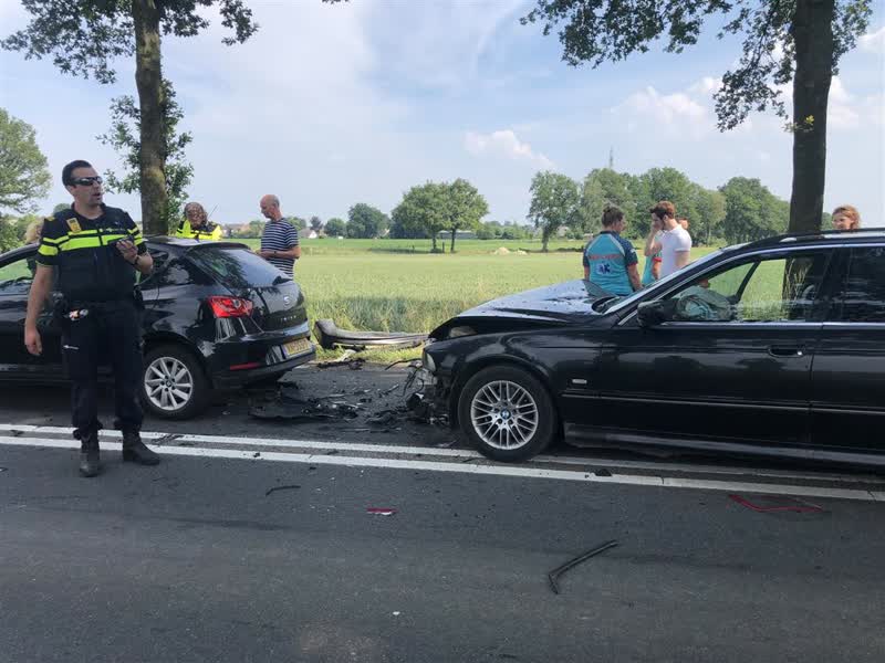 De brandweer moest assistentie komen geven. Hoe de auto’s op elkaar konden botsen, is niet bekend. Er raakte niemand gewond.