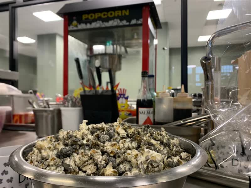 Houd je van drop en van popcorn? Dan kan dropcorn in de smaak vallen. Op het Grescollege in Reuver werd popcorn met dropsmaak gelanceerd.Het idee komt van Joël Sturmans uit Beesel. In samenwerking met restaurant De Gresbuus, gevestigd in de monumentale Greswarenfabriek in Reuver, ontwikkelde hij de nieuwe snack.Creatieve ingeving"Op een gezellige avond met een frietje en frikandel erbij kom je al snel op een creatieve ingeving", verklaart de Beeselnaar. "Popcorn is heel bekend, drop ook. Nederland is echt een dropland. As je die combinatie samenvoegt, dan kan het tot verrassende resultaten leiden."Publiek als bedrijfAangezien het restaurant in hetzelfde pand als het Grescollege zit, hoefde Sturmans niet ver te zoeken naar proevers van zijn product. Dat ziet Karin Grispen, teamleider van Grescollege, ook als voordeel. "Hier op school heb je een heel publiek dat je van alles kunt laten proeven om te kijken of er een markt voor is." Beter in smaakEn daar werd dankbaar gebruik van gemaakt. "We hebben het aan verschillende leerlingen van het Grescollege voorgeschoteld", geeft Sturmans, die ook de knetterdel en overwinningsthee uitvond, aan. "Zo zijn we steeds beter geworden in die smaak." Uiteindelijk is er een zoete en zoute popcorn met dropsmaak. Geen dropfansToch zorgt de dropcorn voor nog wat gefronste wenkbrauwen. De drie leerlingen Sammy Bouzka, Safouane Boudazarte en Reda El Hadadi vinden het wel lekker, maar moeten een beetje wennen aan de smaak. "De nasmaak is een beetje zoutig", zegt Sammy. "Ik ben sowieso geen fan van drop, maar het valt op zich wel mee. Ik had het anders verwacht." Ook zijn vrienden zijn geen dropliefhebbers. "Ik was er wel nieuwsgierig naar, dus ik dacht: ik probeer het, waarom niet", zegt Reda. "Ik proef de drop niet heel sterk", vindt Safouane. Zoete het lekkerstLisa Magnée is juist wel liefhebber van drop en popcorn en het valt bij haar goed in de smaak. "De zoete is het lekkerst, want als je bij de zoute nog meer zout bij doet, dan is het erg zout. En met een beetje zoete smaak heb je ook nog de nasmaak van drop. De zoete is wel echt de aanrader vind ik."Snack in bioscoopOf Sturmans er uiteindelijk geld aan gaat verdienen, weet hij niet. "Maar dat is voor mij niet de doelstelling. Ik denk dat passie vooral de doelstelling moet zijn." Hij wil de snack wel nog bij Service-Bioscoop Luxor in Reuver aanbieden. Reda zou het zelf niet in de winkel of bioscoop kopen. "Ik zou ook niet een hele zak kunnen opeten." Maar Lisa en Safouane zien zichzelf - als het weer mag - in de bioscoop zitten met een doosje dropcorn.
