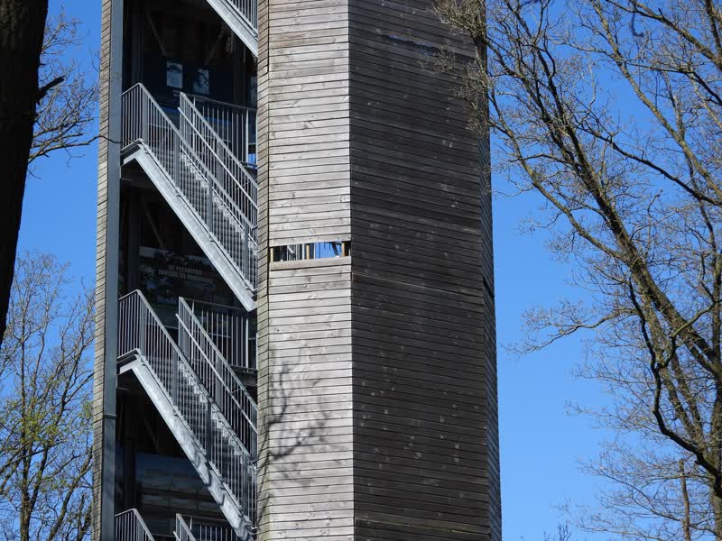 De uitkijktoren van het Belfort Vossenberg in Meijel is vernield. Op foto’s is te zien dat de houten balken door vandalen uit de toren zijn geslagen.