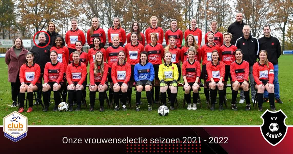 Harrie Huijs staande 2e rij links tussen "zijn" dames. Foto: VV Baarlo