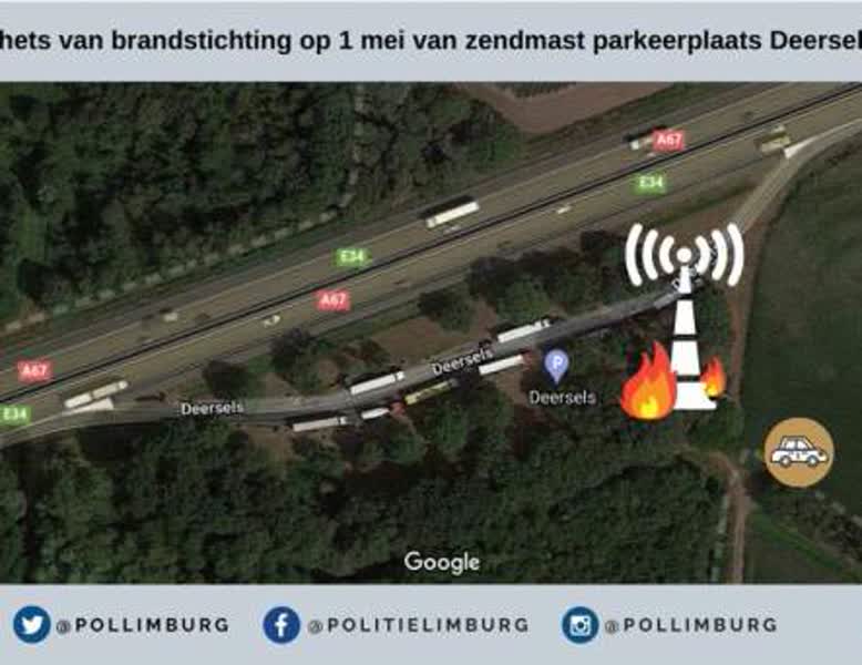 De Limburgse recherche heeft dinsdag  een 32-jarige verdachte uit Beringe aangehouden in het onderzoek naar de brandstichting van een zendmast bij de parkeerplaats Deersels aan de autosnelweg A67.