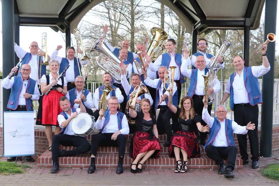 Blaaskapel de Breethaler uit Maasbree, onder de muzikale leiding van Dennis Leijsten, repeteert voor een reis door de streken van Bohemen en het Egerland.