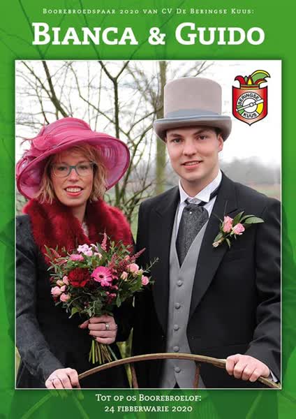 De uiteindelijke winnaar van de spelshow mocht zich gelukkig prijzen door op een belangrijke knop te drukken waarmee de bruidspaarroulette in gang werd gezet. Na diverse foto’s van bruidsparen uit het verleden, stopte de presentatie bij de poster van het bruidspaar van 2020. Dit zijn Guido Theunissen en Bianca Litjens. Ook de familieleden zijn zondag bekend gemaakt.