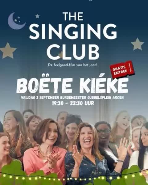 Filmtheater De Nieuwe Scene en het Franz Pfanner Huis Arcen organiseren vrijdag 3 september een film in de openlucht op het kerkplein in Arcen: The Singing Club.