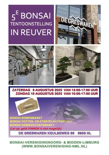 Diverse bonsaibossen zijn in verschillende opstellingen te zien. Er zijn demonstraties over het maken van een Bonsai uit tuinmateriaal.