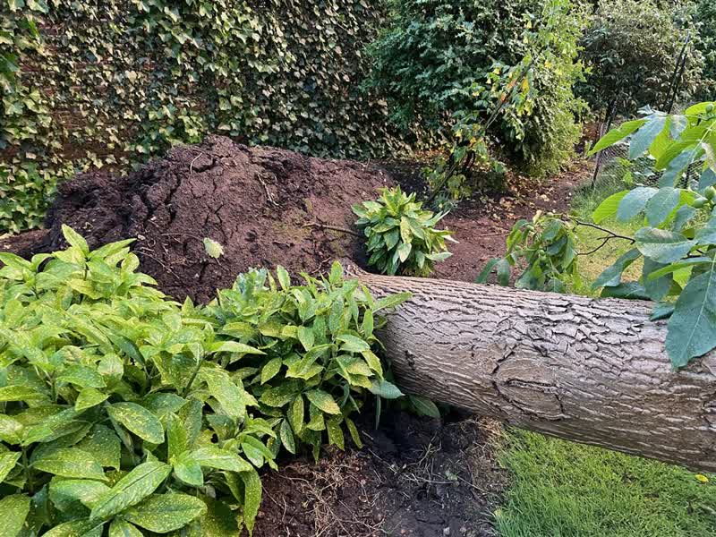 Een van de bewoners, waaronder een man van bijna 89 jaar, lag in bed en kreeg er niets van mee. Zijn vrouw er zag vanuit het terras de boom langzaam omvallen. Er raakte niemand gewonnen.