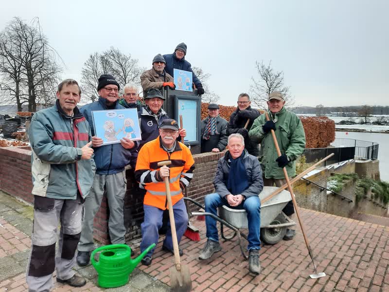 De vrijwilligers die het bord hebben geplaatst Foto: Mariet van Knippenberg
