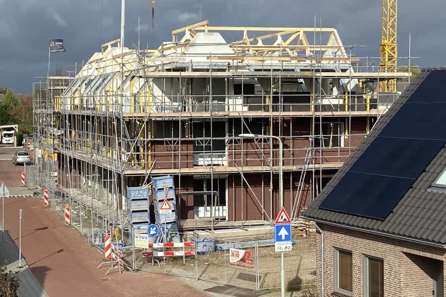 Een nieuwe mijlpaal voor de bouw van het appartementencomplex aan de Baarlosestraat in Maasbree: het hoogste punt is bereikt. Het complex wordt onderdeel van het Laefplein, dat het nieuwe dorpshart van Maasbree moet worden.