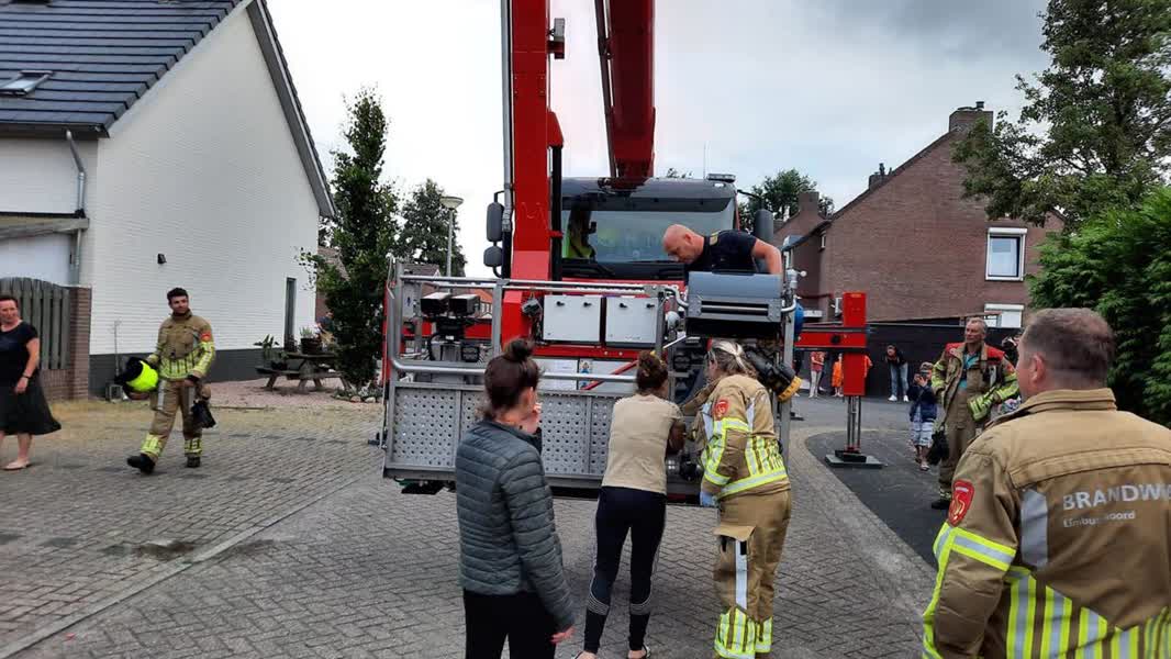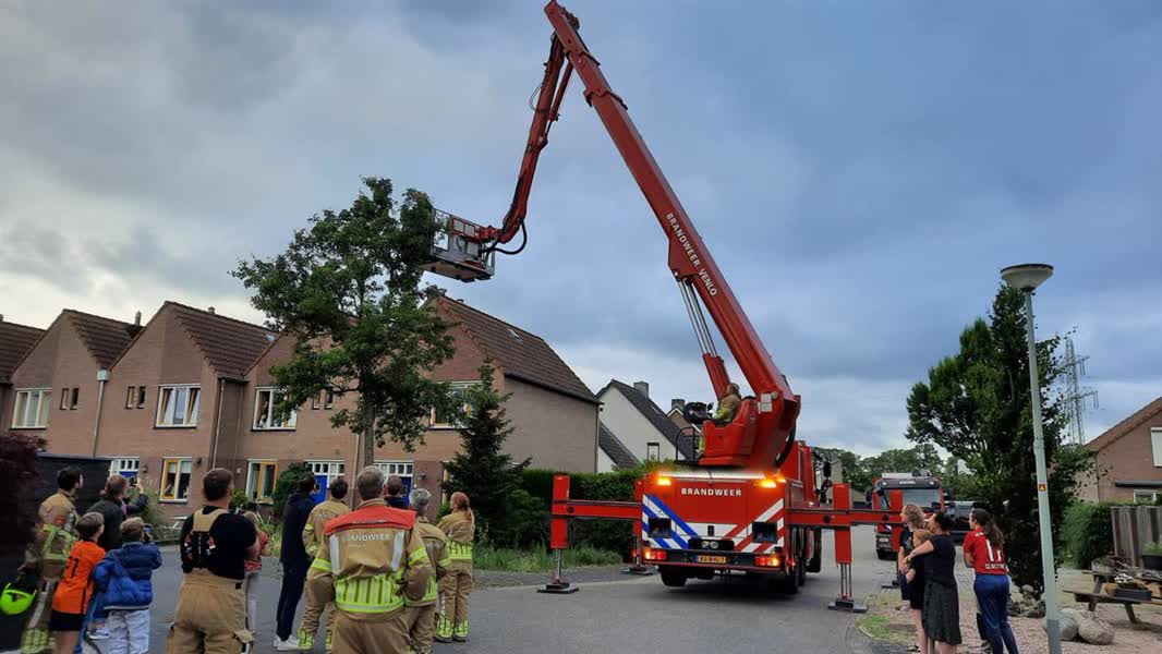 De brandweer uit Kessel kreeg hulp van de collega’s uit Venlo met een hoogwerker, omdat ze het dier met de ladder niet konden bereiken. De poes werd gevangen en weer veilig naar beneden gebracht, waarna ze weer herenigd werd met haar bazin.
