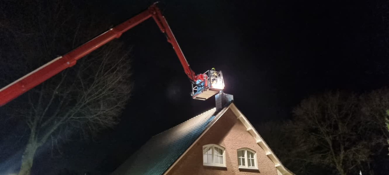 De brandweer heeft de schoorsteen schoon geveegd. Het is niet duidelijk hoe de brand is ontstaan.