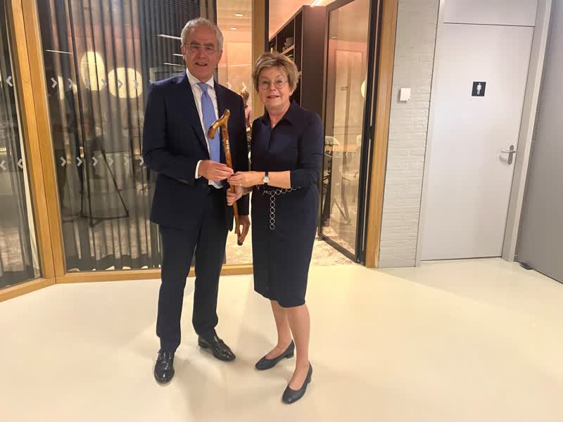 Daarom kreeg zij maandag van Strous een speciaal cadeau overhandigd. Een wandelstok hoort bij de langstzittende burgemeester binnen de Veiligheidsregio Limburg-Noord.
