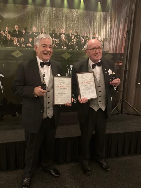 Jan Heijnen en Hay Roodbeen werden door de voorzitter van het Maasbrees Mannenkoor Wim Hermans en waarnemend KNZVvoorzitter Leo Zeegers gehuldigd.