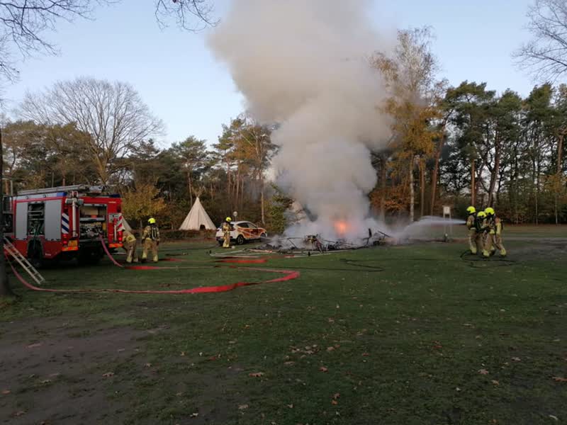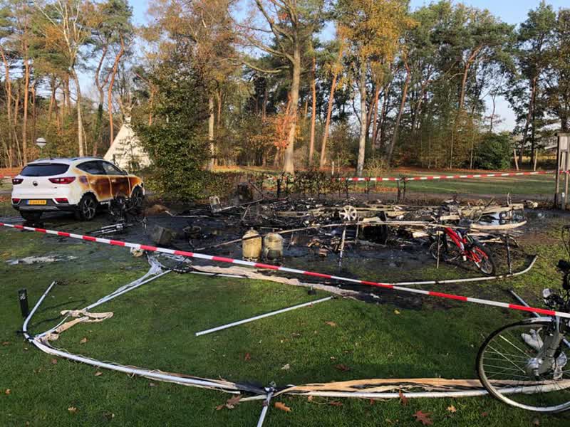 Caravan brandt uit op camping