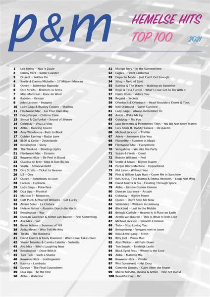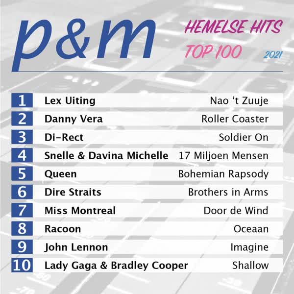 De Hemelse Hits Top 100 wordt opnieuw aangevoerd door Lex Uiting. De hitlijst met de grootste hits allertijden werd door de redactie van P&M samengesteld. In een speciale uitzending op Hemelvaartsdag werd de Hemelse 100 uitgezonden. Vorig jaar gebeurde dat voor het eerst.