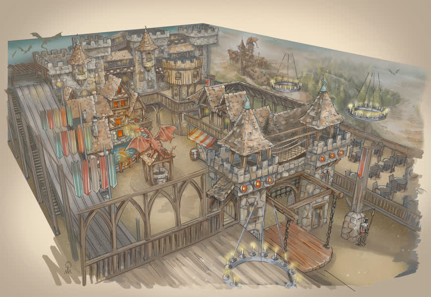 De binnenspeeltuin krijgt naast speeltoestellen ook horeca met terrassen, een entree en een souvenirshop met gastenservice. Een van de blikvangers wordt een vuurspuwende draak in het midden van de hal, die een Middeleeuws dorp ‘in brand’ zet. Kinderen en hun ouders kunnen deze brand samen blussen met echte waterkanonnen. De speeltuin beslaat twee verdiepingen.
