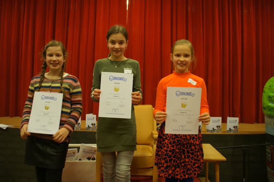 Pip Martens uit Beringe, Mees Lemmen uit Reuver en Femke Faassen uit Maasbree zijn woensdag de winnaars geworden van de lokale voorleeswedstrijd. In de Wieksjlaag in Beringe streden elf kandidaten om de titel ‘voorleeskampioen’.