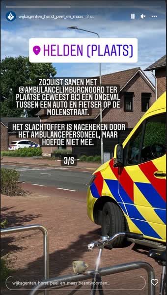 Een auto en een fietser zijn dinsdagmiddag met elkaar in botsing gekomen. Dat gebeurde op de Molenstraat in Helden.