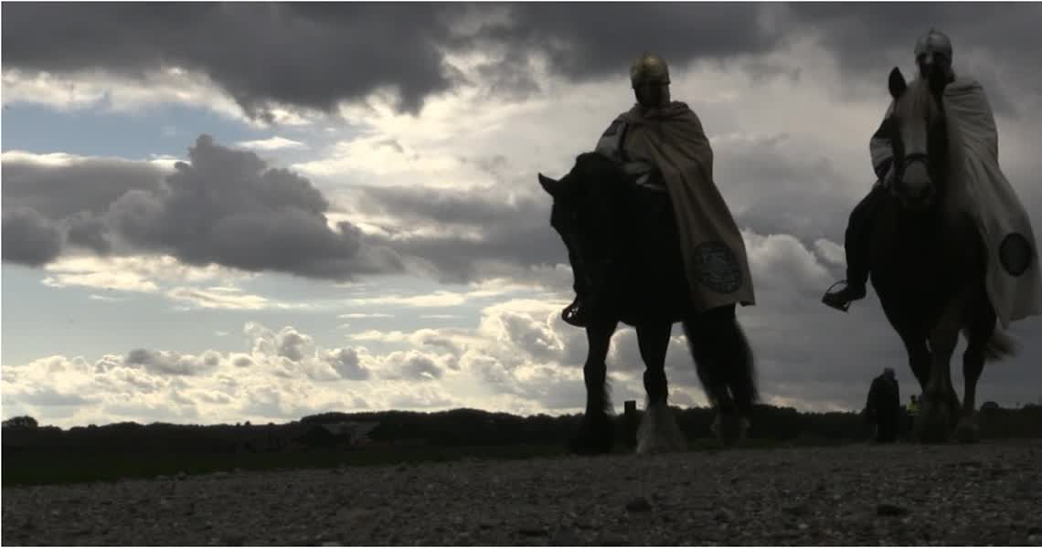 De tien basaltzuilen zijn gemaakt door de Nijkerker kunstenaar Wouter Bouwman die een verhaal vertellen van wat zich in de Romeinse tijd heeft afgespeeld en waarom die Gouden Peelhelm in het veen is terechtgekomen. Met brandende fakkel wordt de tocht voorafgegaan door een groep atleten van atletiekvereniging De Peelrunners uit Horst en Sevenum.