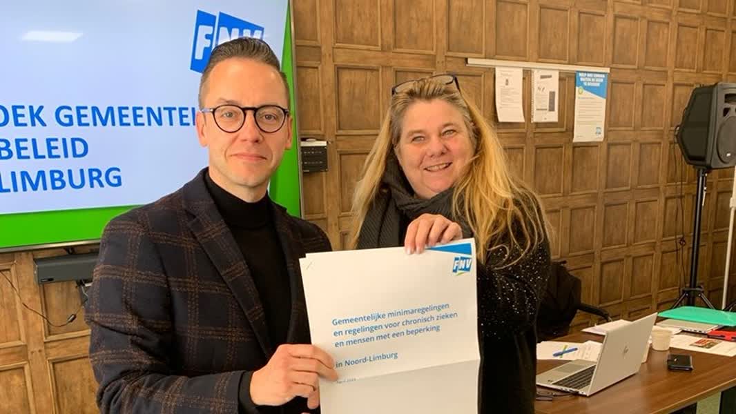 FNV-bestuurder Paul Lempens en Maaike Zorgman van FNV Uitkeringsgerechtigden Website FNV