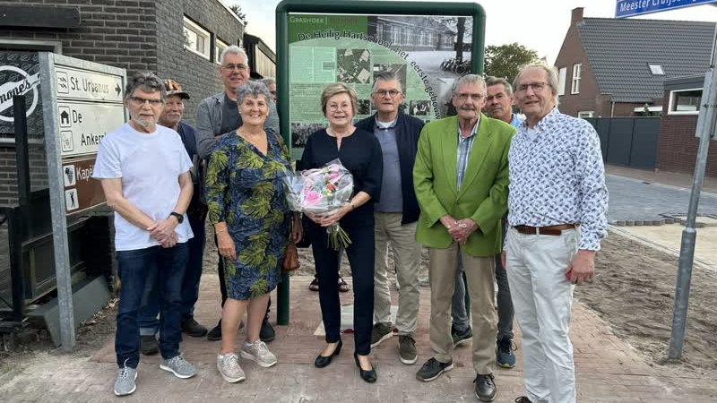 Bij haar eerste bezoek aan Grashoek ontving de burgemeester het boek van de historische werkgroep. A...