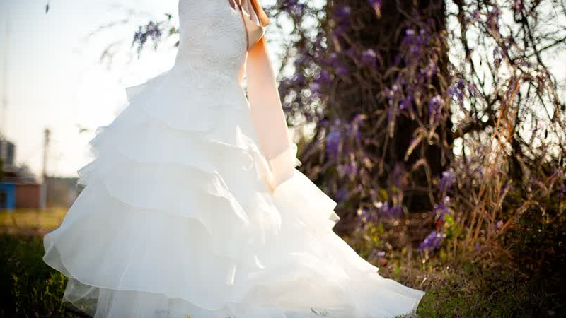 Een bruidsjurk met een duurzaam omslagdoek, gemaakt van wol uit Limburg en Brabant. Gebruikelijk is ...