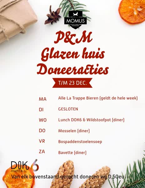 "Elke dag hebben we een nieuwe mini pubquiz. Voor slechts €1,- kan men meedoen en de gehele opbrengst gaat naar Ut P&M Hoés", zo schrijft DOK6. "De deelnemers ontvangen één a4tje vol met leuke, toffe en verrassende quizvragen. Vergeet ook zeker niet naam en mobiele nummer te noteren, want onder alle inzendingen wordt een DOK6 Horeca cadeaubon t.w.v. €25,- , een biermenu cadeaubon en een waardebon voor 1 gratis snackplank verloot."