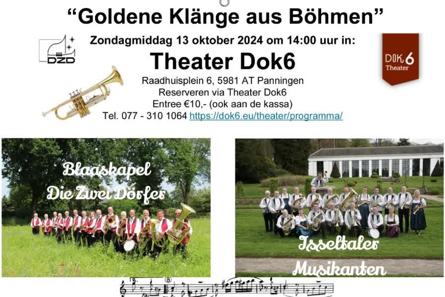 Blaaskapel Die Zwei Dörfer en Stichting Bevordering Blaasmuziek (SBB) zijn de initiatiefnemers voor een concert in DOK6 Theater Panningen op zondag 13 oktober 2024 onder de naam ‘Goldene Klänge aus Böhmen’.
