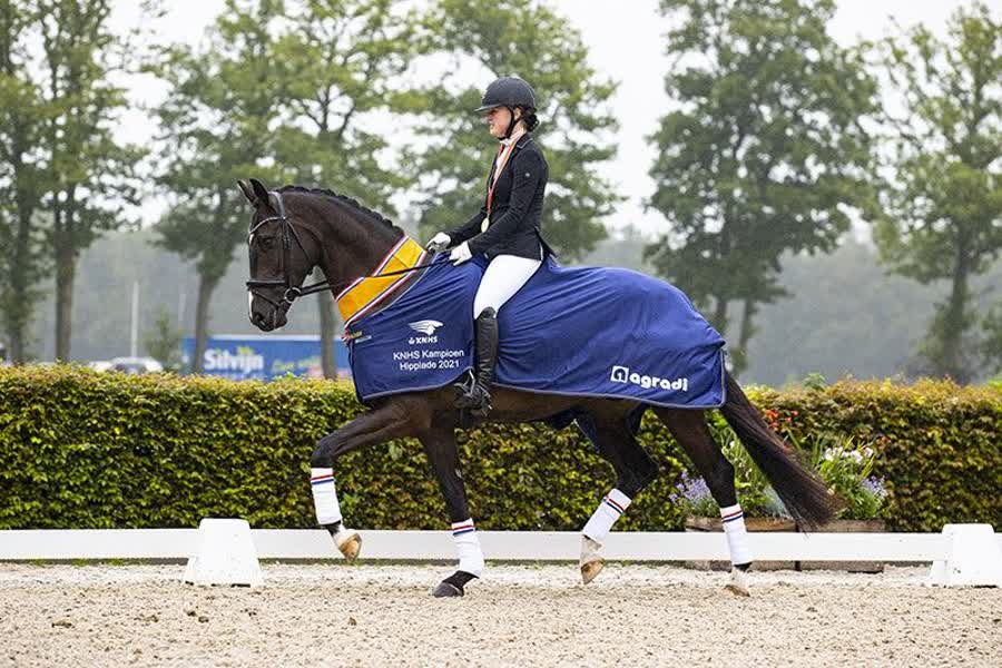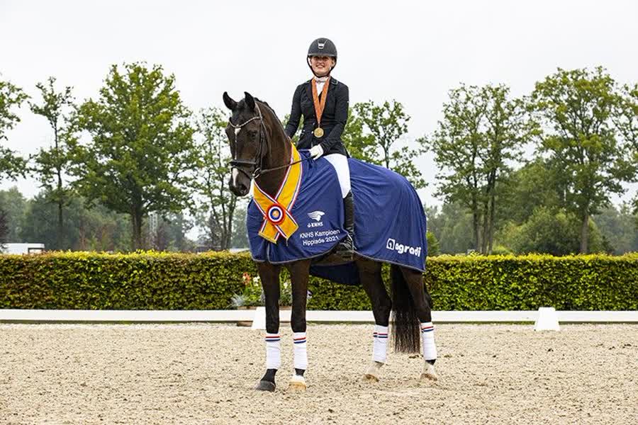 De 17-jarige dressuuramazone Anna Neefs uit Helden heeft donderdag de gouden plak veroverd tijdens het Nederlands kampioenschap in Ermelo met haar 4- jarige paard Man in the Moon.