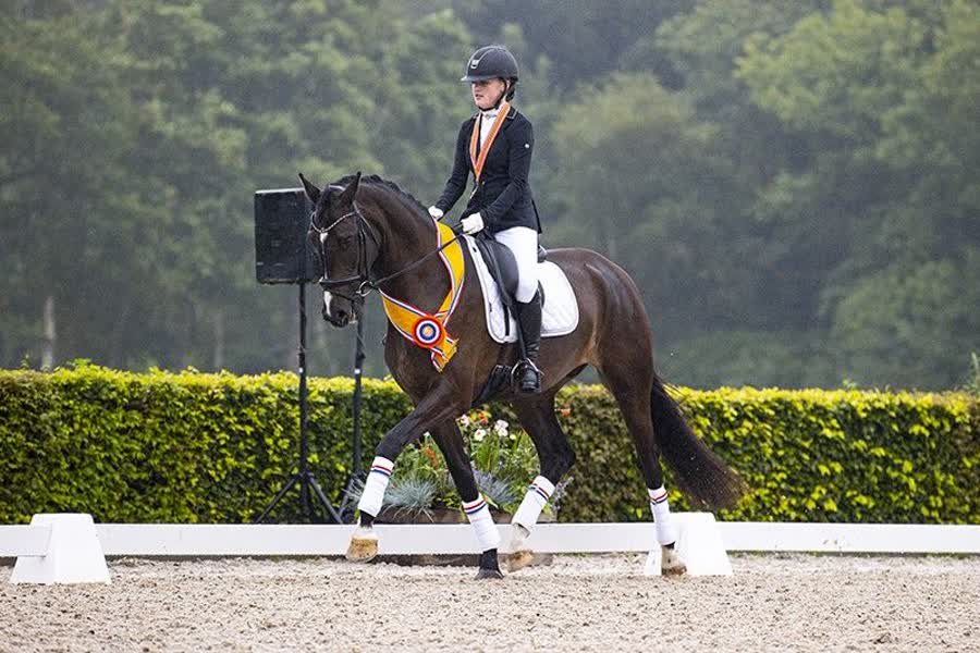 Nog geen jaar geleden nam ze afscheid van de ponyclub. Haar leeftijd en groei van haar lichaam maakte het noodzakelijk om over te stappen naar de paarden. Vanwege corona waren er geen wedstrijden dus werd de 4-jarige Man in the Moon uit de stal gehaald en zadelmak gemaakt. Onder leiding van haar trainster Monique Peeters, ook een fanatieke dressuuramazone, werd het paard klaargestoomd voor de wedstrijdsport.