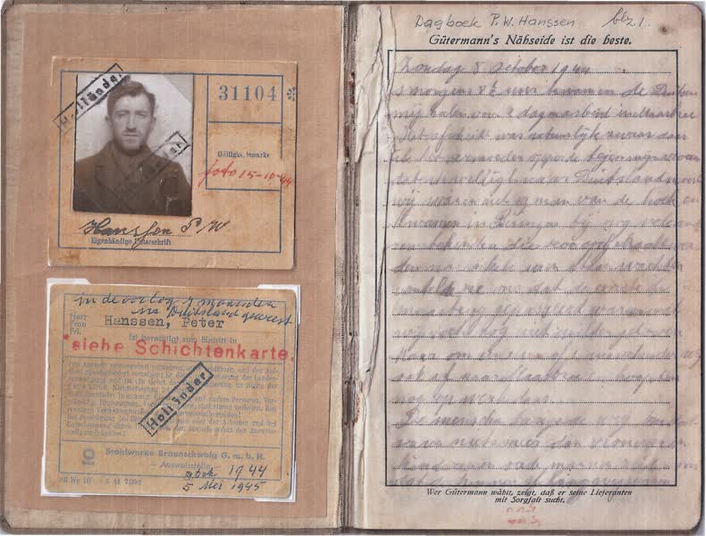 Piet Hanssen gebruikte voor zijn dagboek een gevonden notitieblokje met een linnen kaft dat hij in de buurt van de staalfabrieken van Braunschweig gevonden had. Hierin schreef hij zaken die hij zag nauwkeurig met een potlood op. De Duitsers hebben het dagboek nooit ontdekt.
